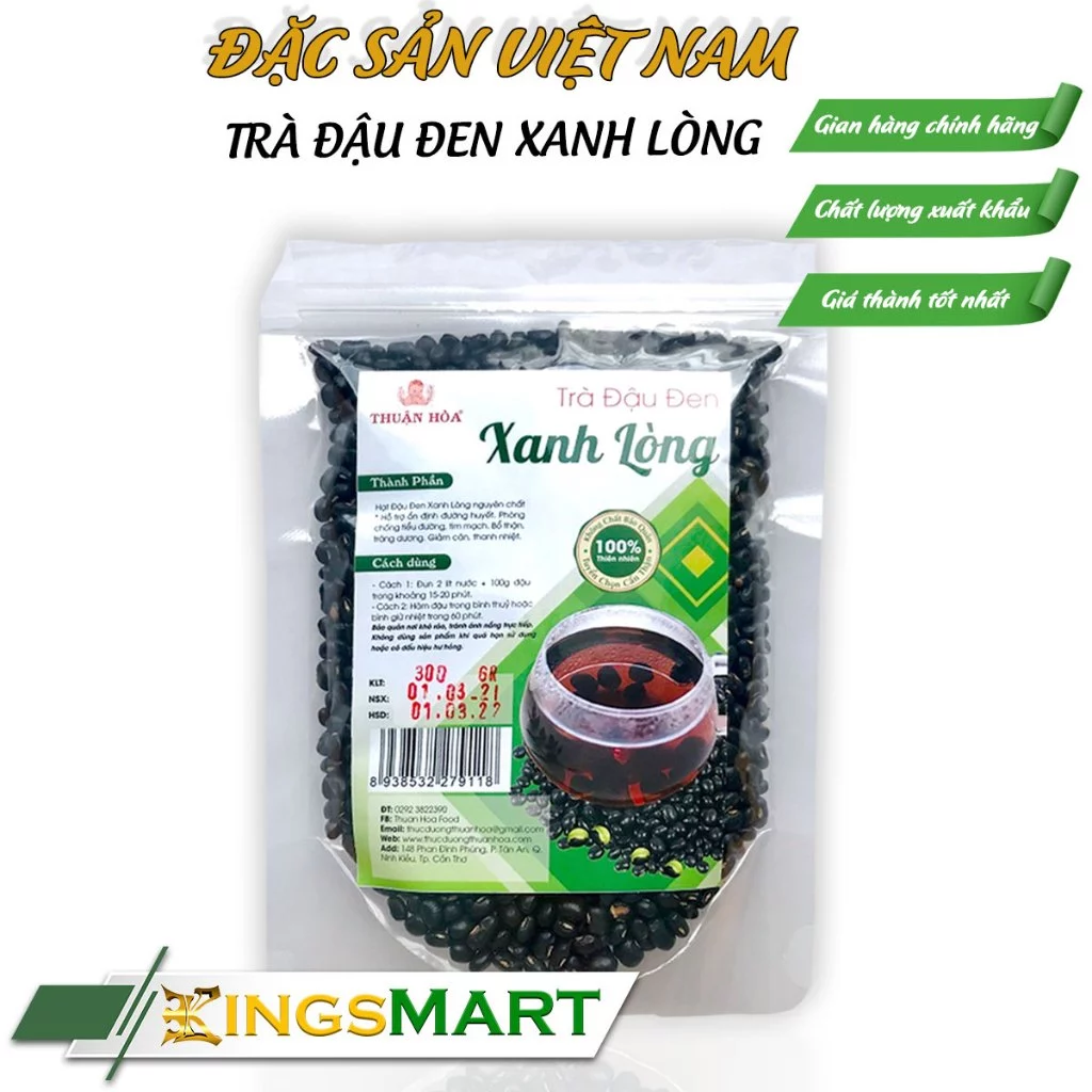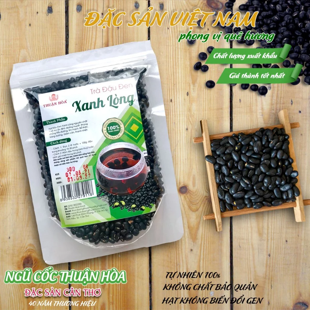 \n「Thuận Hòa」ブランドの緑芯黒豆茶は、単なるリフレッシュドリンクではありません。伝統的な食養生法と現代の生産工程を融合させた、心と体に優しい一杯です。しっかりとした300gのパッケージは、ご自身用はもちろん、ご家族やご友人への健康ギフトとしても最適です。\nこのお茶は、ベトナム南部カントーの豊かな自然で育った厳選された緑芯黒豆のみを100%使用しています。小粒でふっくらとした豆は、真っ黒で艶やかな皮と、鮮やかな緑色の内側が特徴。これは高い栄養価を持つ豆の証です。\n豆は、伝統的な炭火焙煎または現代の熱風乾燥技術で丁寧に加工されています。焦げ付かせずに豆本来の香ばしさを最大限に引き出し、袋を開けた瞬間に豊かな香りが広がり、五感を刺激します。\n古くから「台所の薬」と称されてきた緑芯黒豆は、お茶にすることでその効能を最大限に発揮します。\n- デトックス・美肌効果: 肝臓の熱を取り除き、体内の毒素排出を促進します。ニキビの軽減、肌のきめを整え、滑らかで若々しい肌へと導きます。 \n