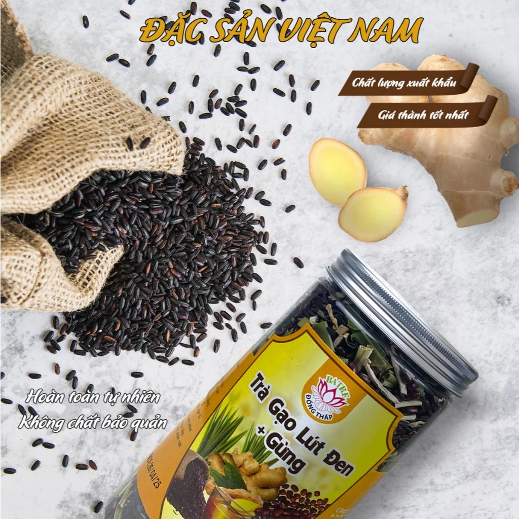 SEN BA TRE Roasted Black Germinated Rice & Ginger Tea - Detox, Fat Burn, Cold Stomach Relief - 500g Jar