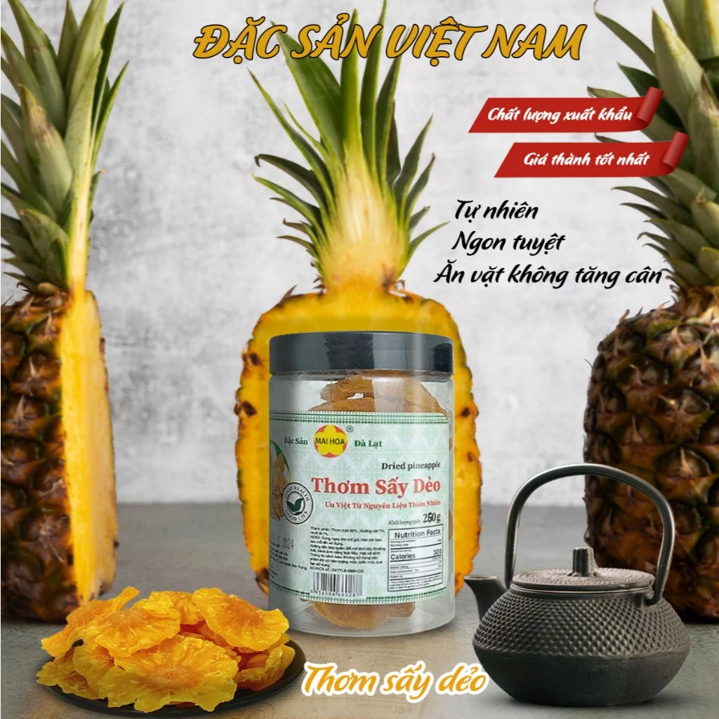 パイナップルは、元々ビタミンとミネラルが豊富な果物です。NGÔ MAI HOAブランドの現代的なソフトドライ技術により、その栄養素はそのままに保たれています。
