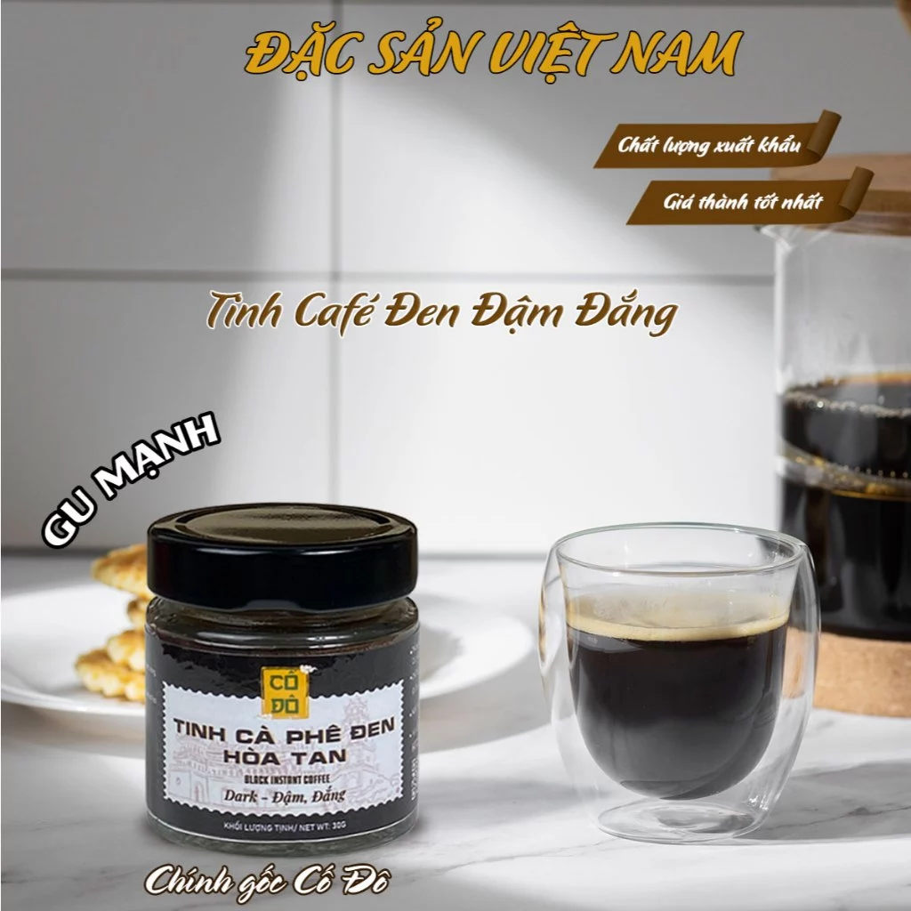 CÔ ĐÔ Dark Instant Black Coffee 30g - Rich, Bitter & Perfect with Sugar or Milk