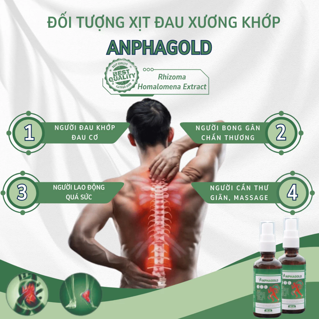 Anpha Gold 鎮痛ハーブスプレーは、ベトナムの伝統的な知恵と厳選された天然ハーブの力を凝縮した、速攻性の高い外用スプレーです。日々の体の不調から、スポーツや労働による痛みまで、幅広い症状に対応します。