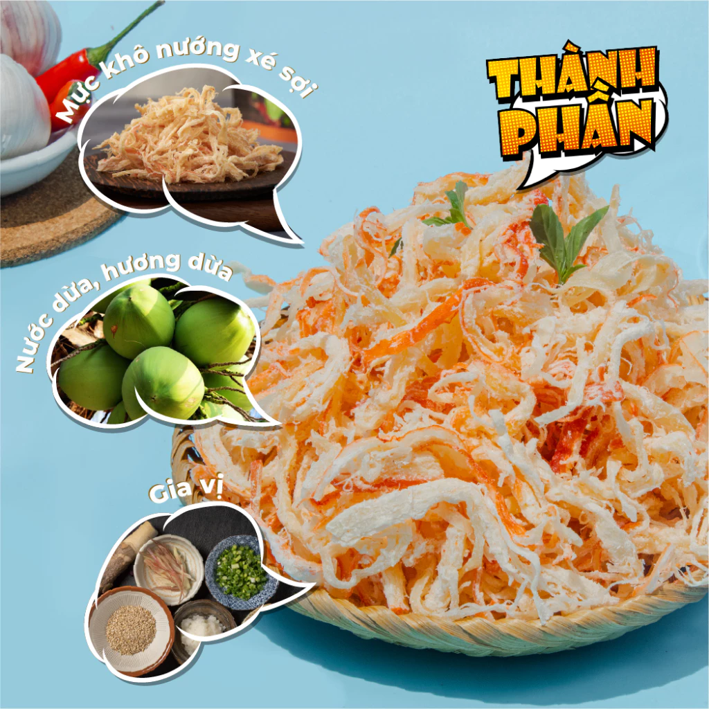 Phan Thiet Specialty Shredded Squid Steamed with Coconut Water - 500g - De Nhat Kho Premium Dried Seafood