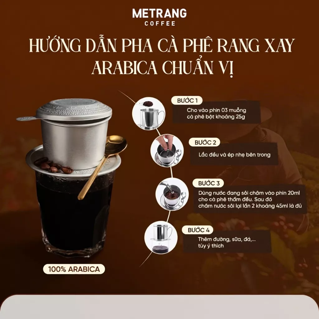 METRANG Arabica Ground Coffee - Mild Bitterness, Sweet Fragrant Aftertaste, Authentic Vietnamese Flavor 500g Bag