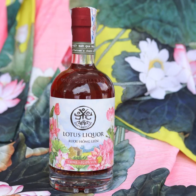 紅蓮は、満開の蓮池からインスピレーションを得た、自然発酵のフルーツ&ハーブ酒です。朝日のような淡いピンクがかった透明な琥珀色は、一目見ただけで優雅さと上品さを感じさせます。マム蒸留所の素朴で洗練されたガラス瓶のデザインは、その純粋さを完全に引き立て、茶会や瞑想のひととき、またはベトナム文化が息づく豪華な贈答品として最適です。