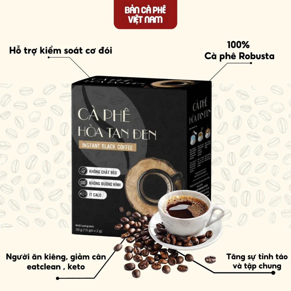 BẢN F&B Vietnamese Instant Black Coffee - Sugar-Free, Zero Calorie, Boosts Focus & Alertness [Combo 2 Boxes: 15 Sachets x 2g Each]