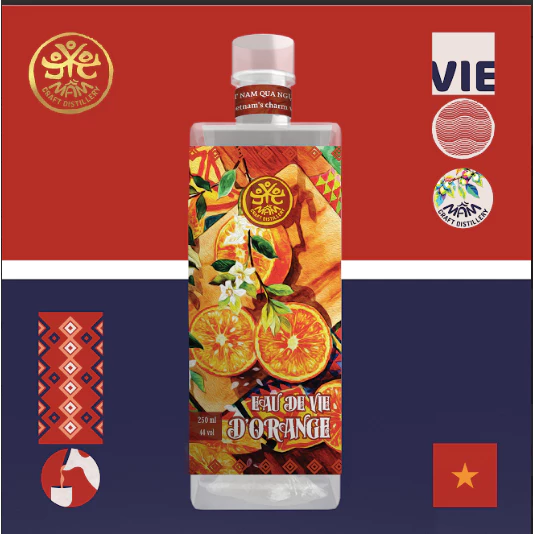 一般的なリキュールのような強い砂糖の甘さとは一線を画し、オレンジの皮から抽出された芳醇なアロマと、果肉由来の繊細な甘さを追求した純粋な味わいが特徴です。アルコール度数は高いものの、口に含むと驚くほど軽やかで洗練された印象を与え、ベトナムの豊かな自然への敬意が込められています。