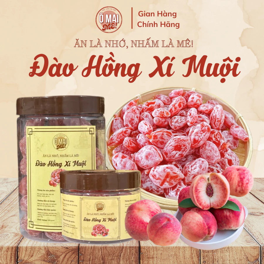 Vietnamese Pink Peach Omai with Xí Muội Powder, Sweet & Sour Dried Fruit Snack 500g - Ô MAI MÊ