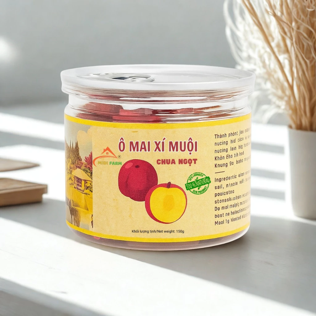 MIDIFARM Seedless Sweet & Sour Dried Plum-Flavored Peach (Ô Mai Đào Xí Muội) Da Lat Specialty Fruit 150g Jar