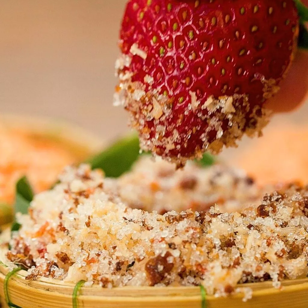 • **新鮮なフルーツにディップ:** 最も定番の食べ方です。青マンゴーやパリパリのグアバ一切れに梅しおを少しつけるだけで、まさに完璧な味のハーモニーが生まれます。
