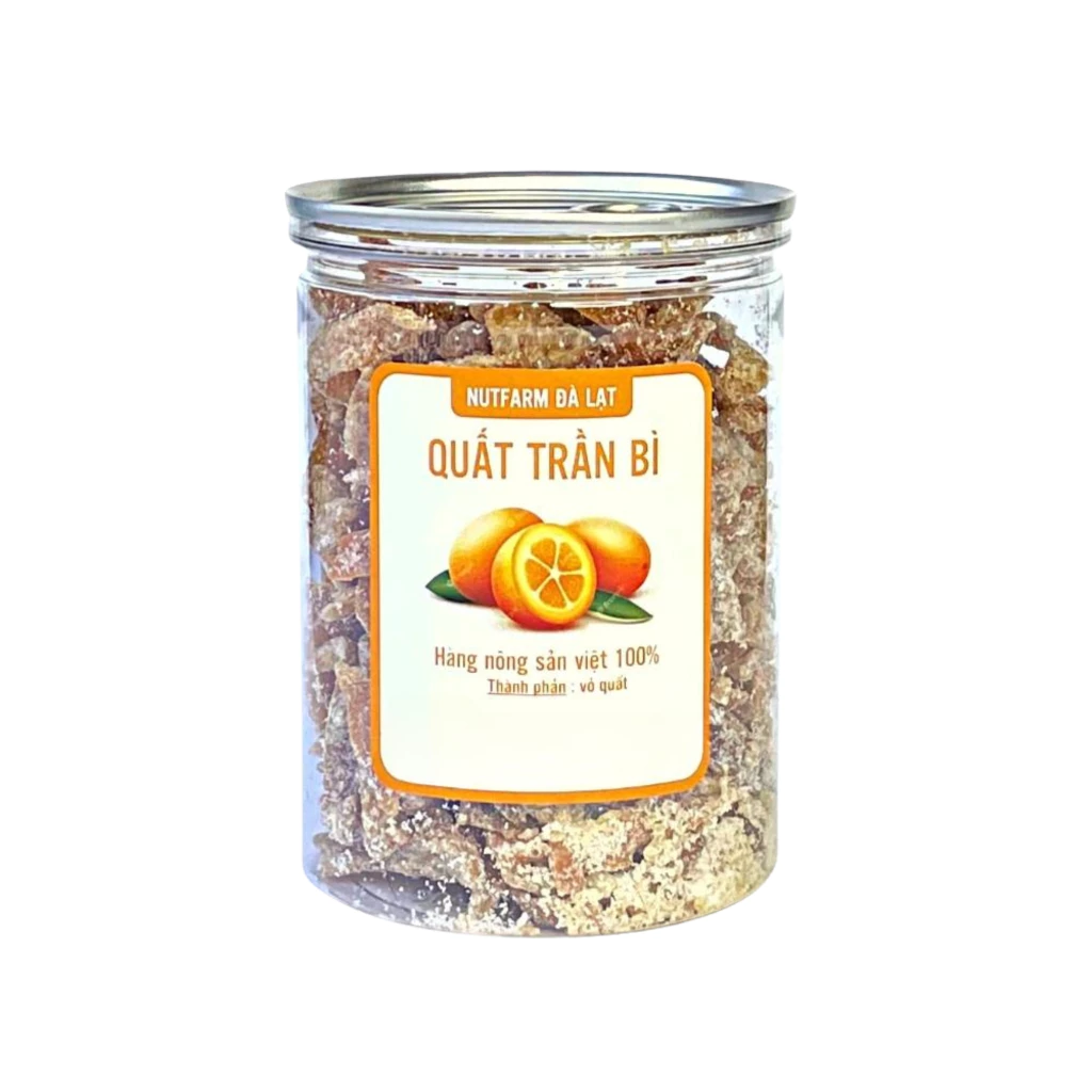 NutiFarm Dried Mandarin Peel with Sour Plum Powder, Da Lat Specialty Dried Fruit, 400g Jar