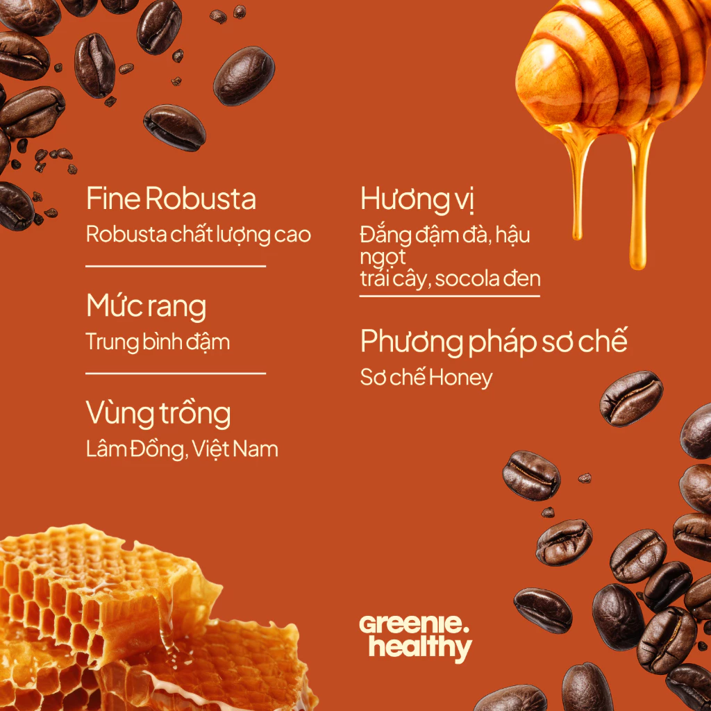 - 完熟ロブスタ豆100%使用: 最高の糖度を持つ、完璧に熟した赤いロブスタチェリーのみを選別し、ハニープロセスにかけられています。