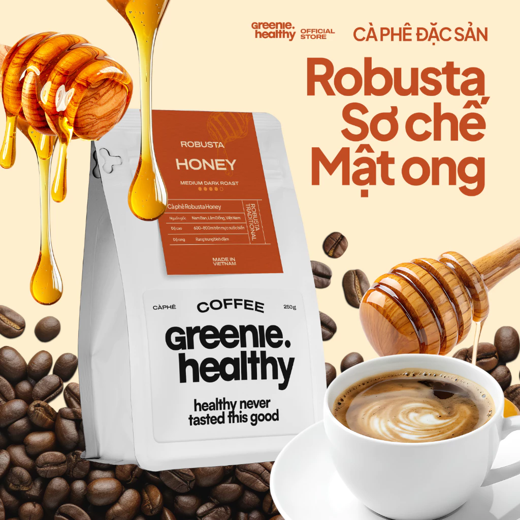 MIDIFARM Robusta Honey Coffee Beans Coarse Grind 250g - 100% Pure, Mellow Bitterness, Sweet Aftertaste, Rich Aroma
