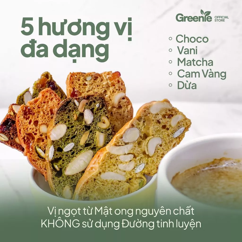 Whole Grain Super Seed Biscotti 5 Flavor Mix (Chocolate-Vanilla-Matcha-Orange-Coconut) - Sugar-Free, Low-Calorie Diet Snack 360g