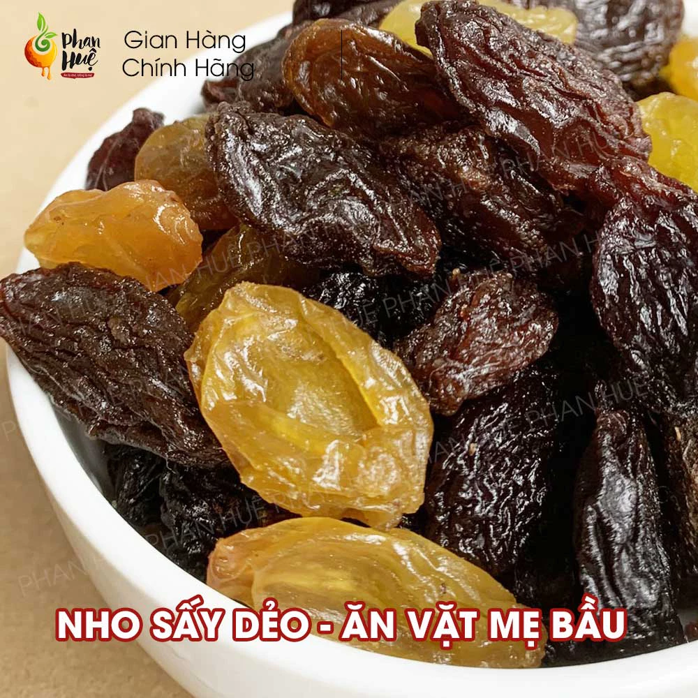 Phan Hue Low-Sugar Soft Dried Grapes 100g - Mild Sweet & Sour, Diet-Friendly, Healthy Snack for Pregnant Women