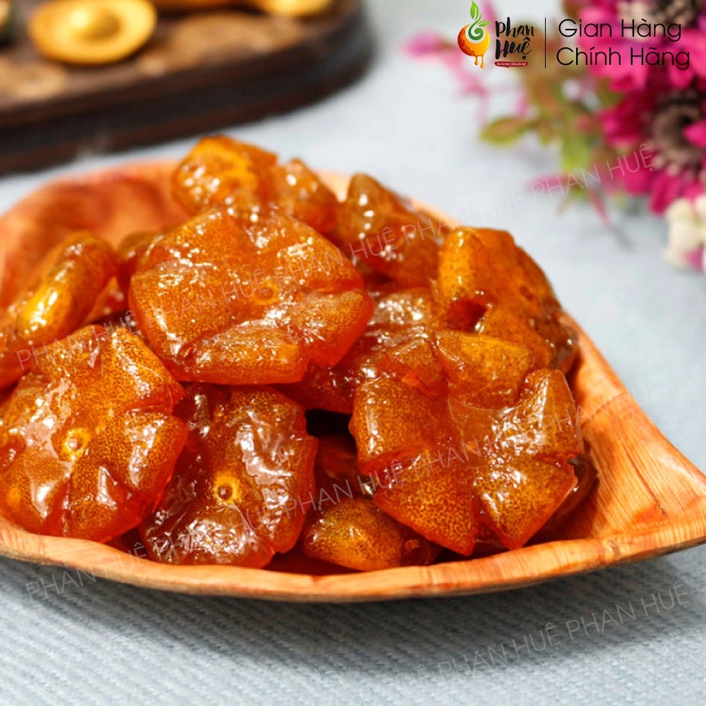 ファンフエは、小さなキンカンを琥珀色に輝く「宝石」へと見事に変身させました。便利な500グラムの箱に詰められたオーマイは、職人の心血が注ぎ込まれた一粒一粒が、キンカン独特の爽やかな香りと、フルーティーな酸味を閉じ込めています。北ベトナムの肌寒い午後のティータイムや、テト(旧正月)のお盆には欠かせないこのお一品は、古都ハノイの落ち着いた上品な雰囲気を思い出させてくれます。