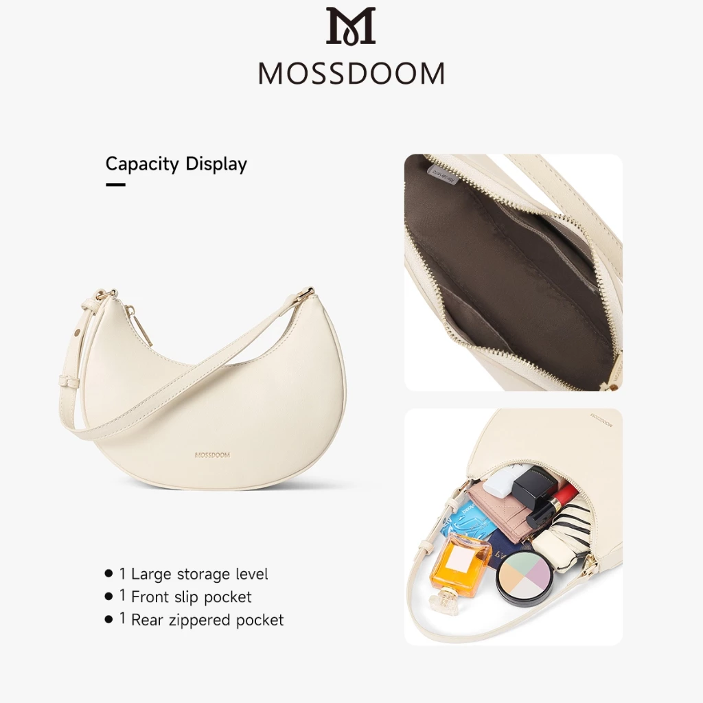 MOSSDOOM Kattie 三日月型レディースショルダーバッグ - シンプルエレガント アイボリーの通販・個人輸入代行販売商品