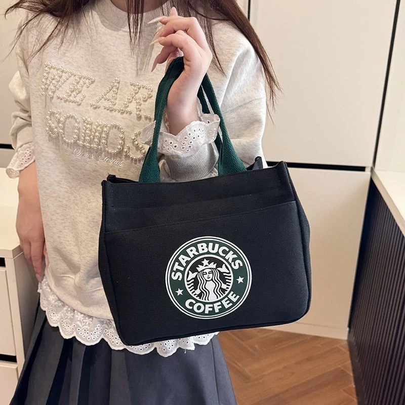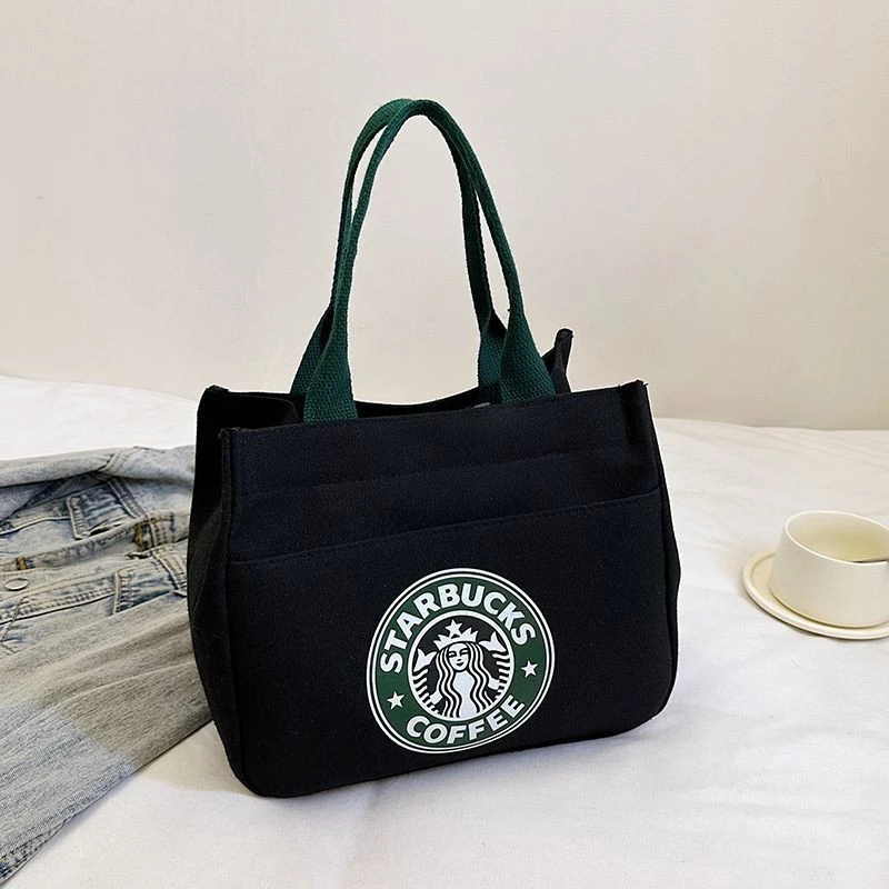 Starbucks Style Japanese Canvas Tote Bag - Black