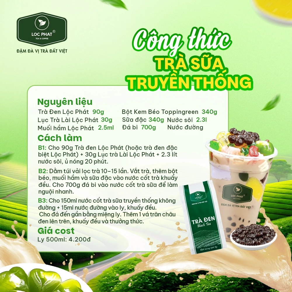 - 本格ミルクティー: 濃厚な味わいのミルクティー、チーズフォームティー、マキアートティーなどのベースとして最適です。ミルクに負けない茶葉の存在感で、本場ベトナムの味を再現できます。
