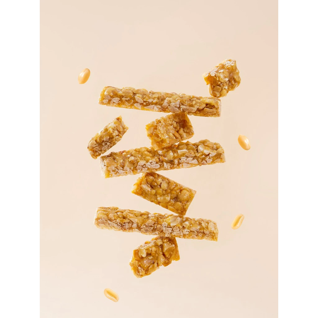• **麦芽糖とグラニュー糖:** 黄金比でブレンドされた麦芽糖とグラニュー糖が、琥珀色に輝く透明な結合層を作り出し、カリカリとした絶妙な食感を生み出します。硬すぎず、歯にくっつきにくい優しい口どけです。