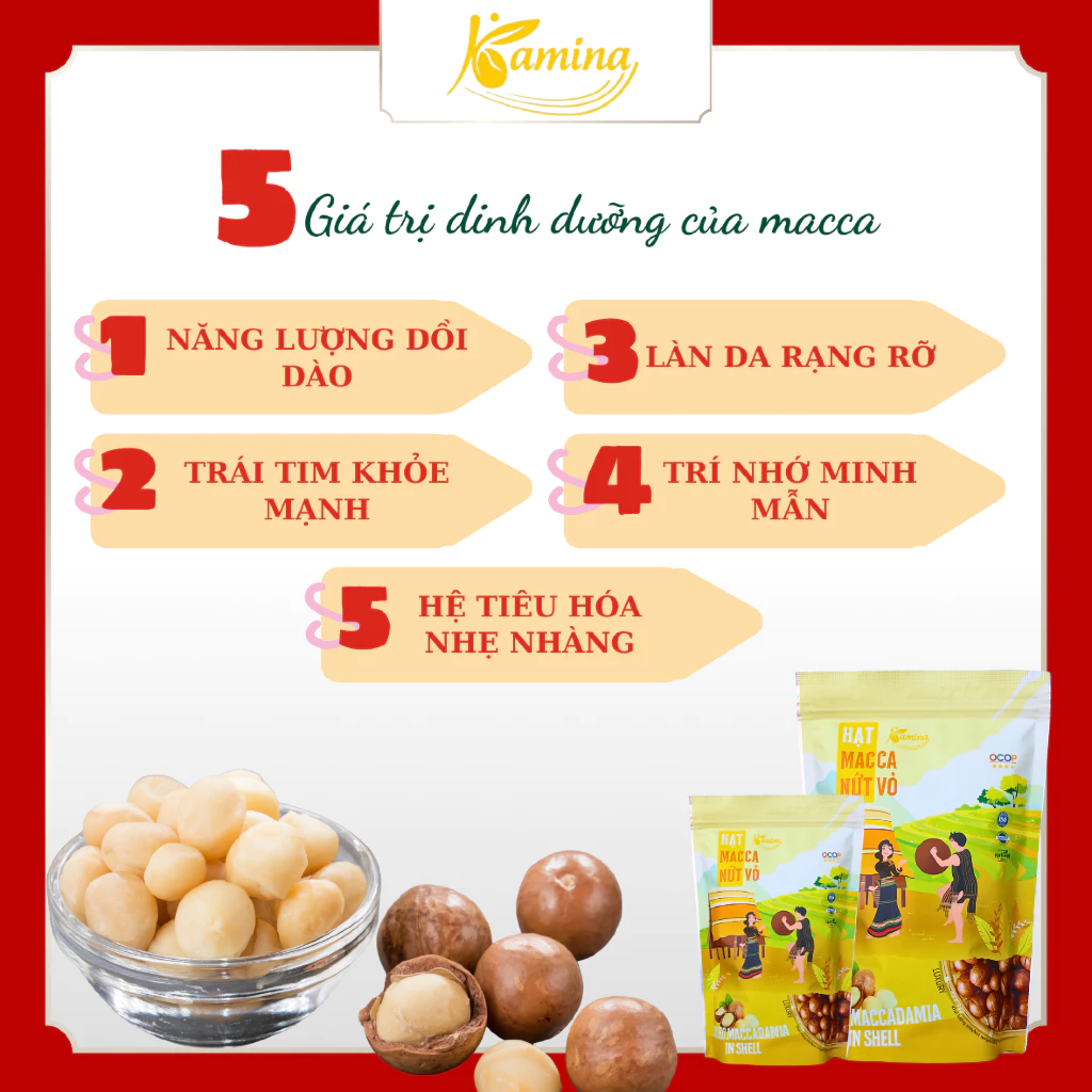 「ナッツの女王」と称されるマカダミアナッツ。バザルト台地のダクラク産マカダミアナッツは、その宝物の一つです。Kamina Storeの殻なしマカダミアナッツ(高級紙箱入り1kg)は、栄養価の高い食品としてだけでなく、贈答品としても芸術作品に昇華させました。これは、濃厚なオリジナルの風味と洗練されたエレガントなパッケージングの組み合わせを求める方にとって完璧な選択です。