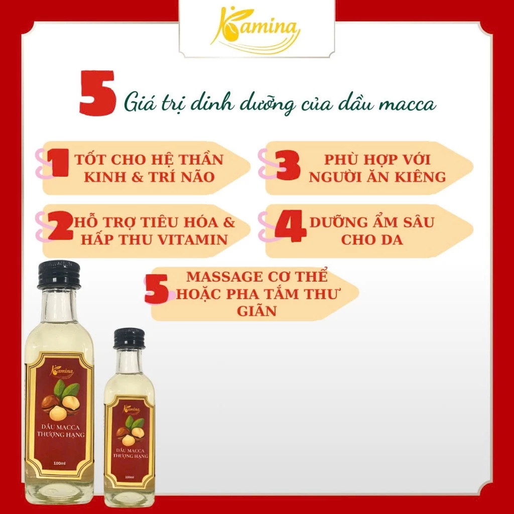 KAMINA Cold-Pressed Pure Macadamia Oil 100ml - Nutritious, Anti-Aging, Baby Food Supplement