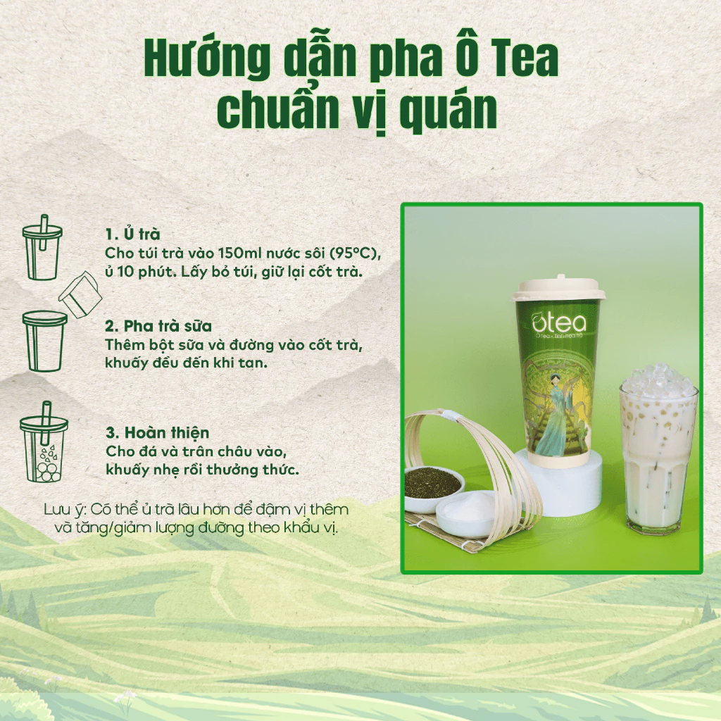 各カップは、ベトナムの各地域の文化を象徴する美的デザインが施された芸術品です。110gという科学的に計算された分量は、お茶のパックからタピオカまで完璧なバランスを生み出しています。Oteaシリーズの特別な点は、伝統的なオロン、香ばしい焙煎オロンから、インスピレーションに満ちた花の香りやフルーツのバリエーションまで、毎日飽きることなくメニューを変えられる6つの異なるフレーバーです。
