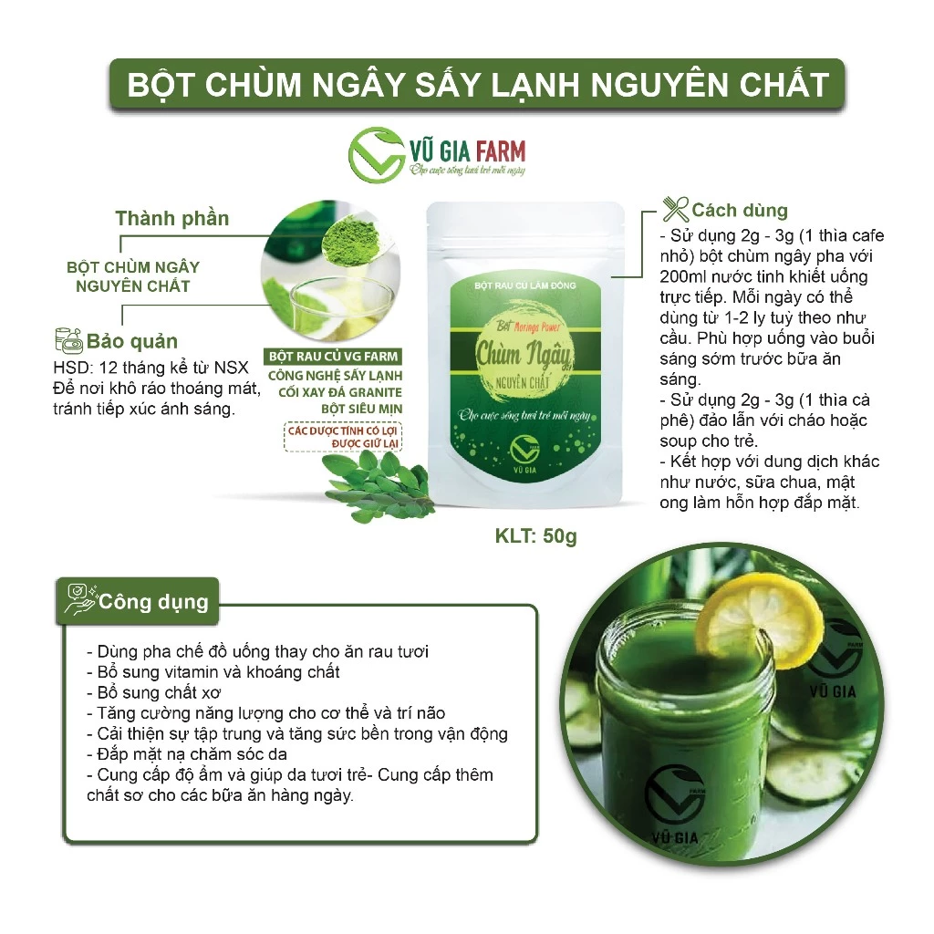 Vu Gia Pure Cold-Dried Moringa Powder (50g/bag) - The Miracle Tree for Health & Beauty