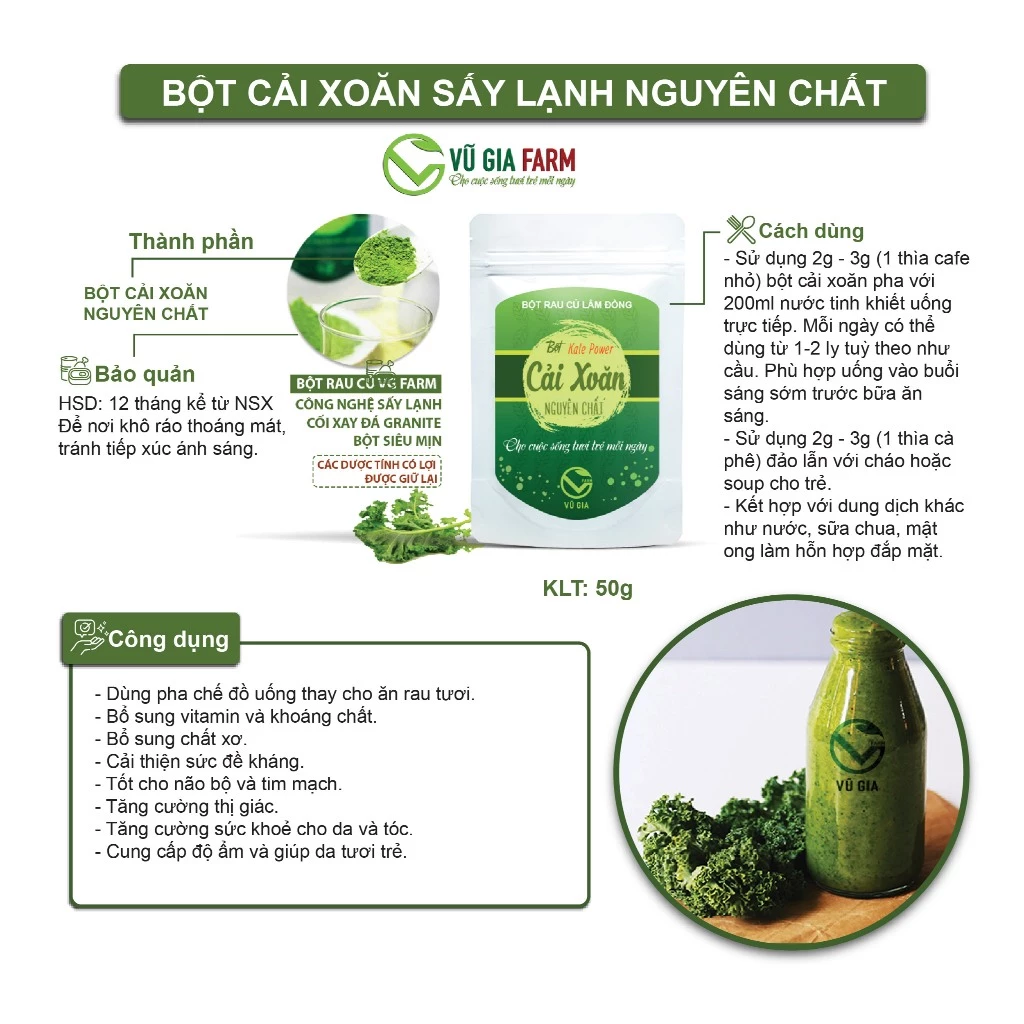 Vũ Gia Pure Freeze-Dried Kale Powder (50g)