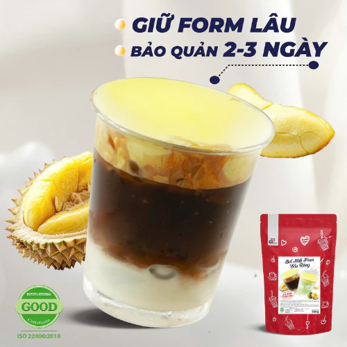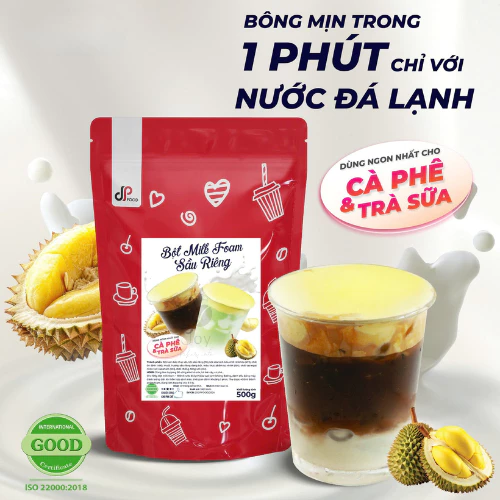 DPFoodドリアンミルクフォームパウダーは、完熟ドリアンの特徴をなめらかなクリーム状のミルクに完璧に再現するために開発された、専門的な飲料用原料です。500gという便利な包装で、傷みやすく匂いが変わりやすい生ドリアンの保存に関する悩みを完全に解消します。泡立てたフォームは上品な薄黄色で、完璧なとろみと粘度があり、ドリアン愛好家なら誰もがすぐに心を奪われるような特徴的な香りを放ちます。