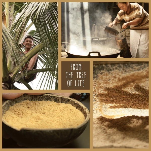ココナッツシュガーは、ココナッツの実からではなく、まだ開花していないココナッツの花の蕾から直接採取されます。熟練の職人が高い木に登り、繊細な手つきで花蜜の一滴一滴を丁寧に集めます。この清らかな花蜜は、栄養素を最大限に保つために低温で手作業で濃縮され、黄金色に輝くきめ細やかな粒状の砂糖へと姿を変えます。有機認証(オーガニック)を取得しているため、農薬、保存料、漂白剤は一切使用されていません。ココナッツ本来の芳醇で香ばしい風味がそのままお楽しみいただけます。
