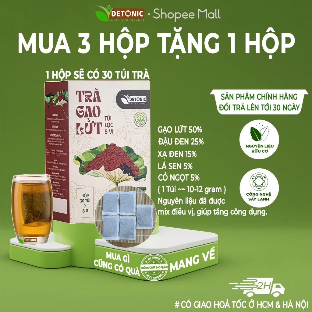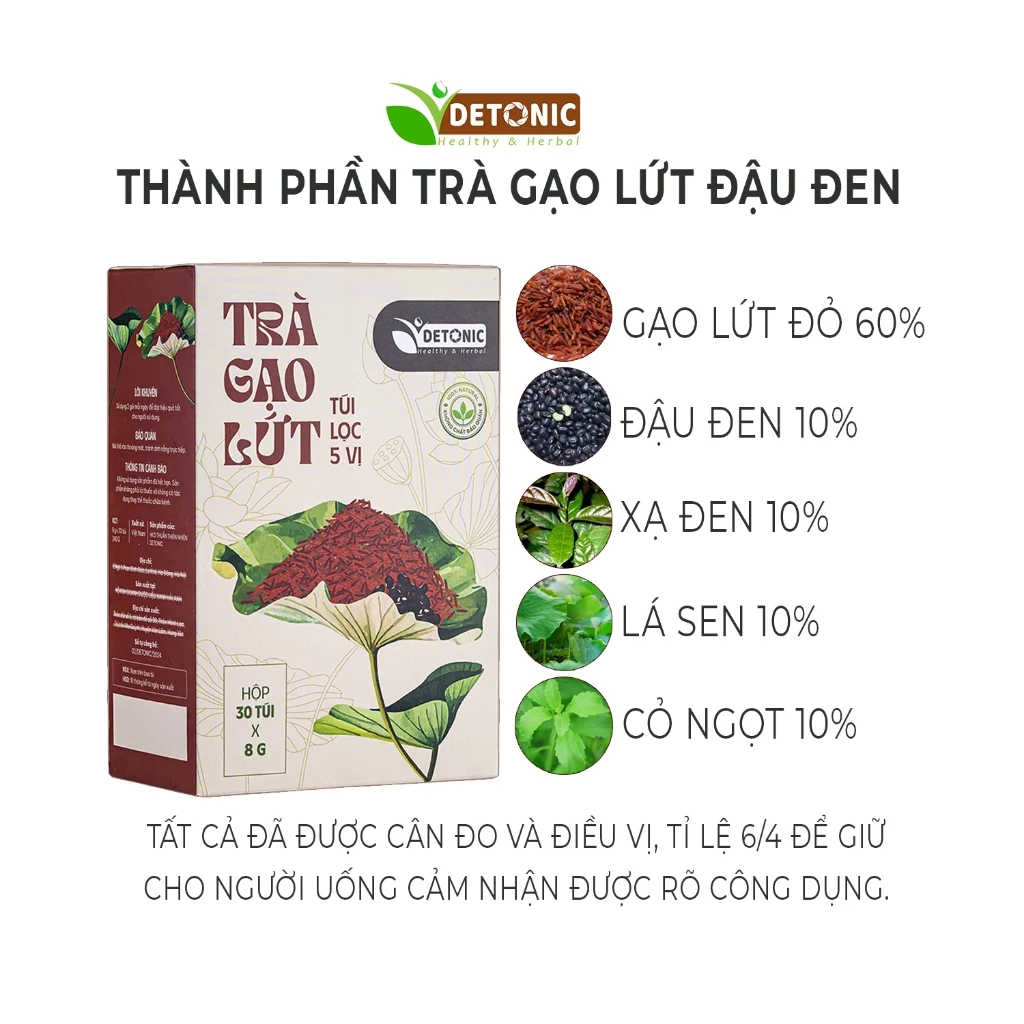 [Buy 3 Get 1 Free] DETONIC Brown Rice Diet Support Tea (Brown Rice, Black Bean, Xa Den, Lotus Leaf, Stevia Blend) Convenient Individually Packaged Tea Bags