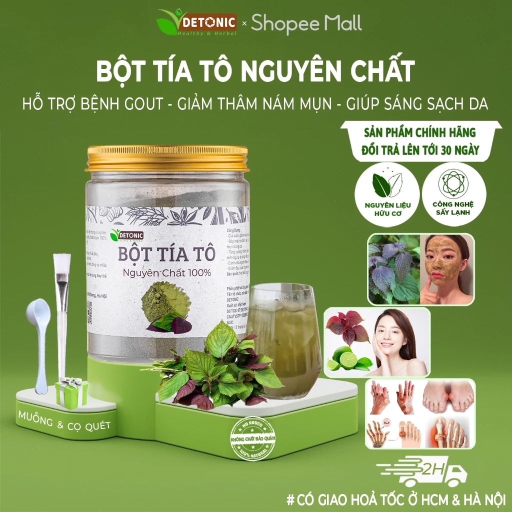 DETONIC Pure Perilla Powder 250g - Supports Acne, Skin Brightening, Dark Spot Reduction & Gout Relief, No Preservatives
