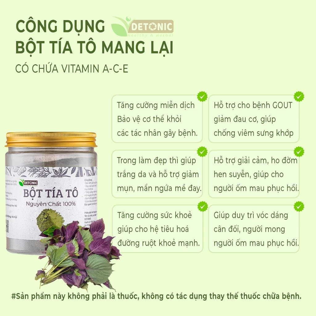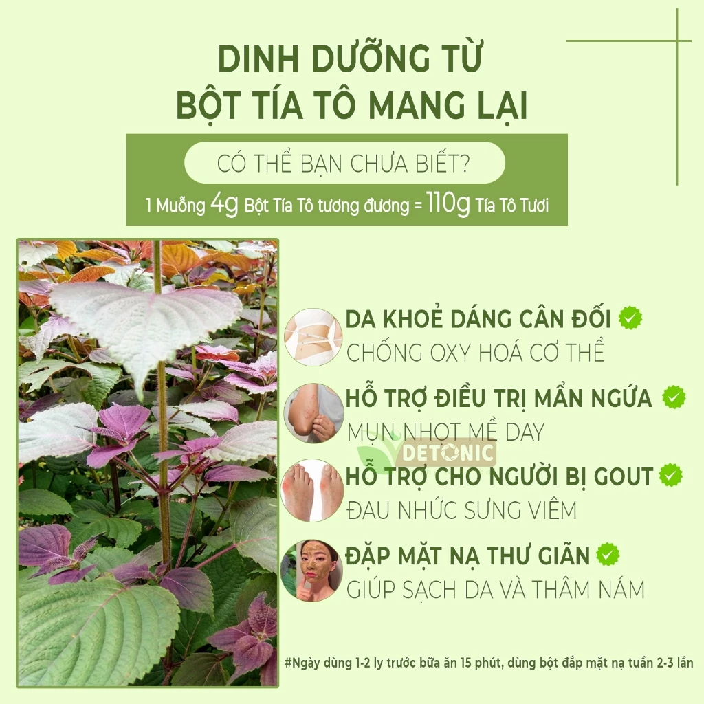 DETONIC Pure Perilla Powder 500g - For Acne, Skin Brightening, Dark Spots, Gout Relief, No Preservatives