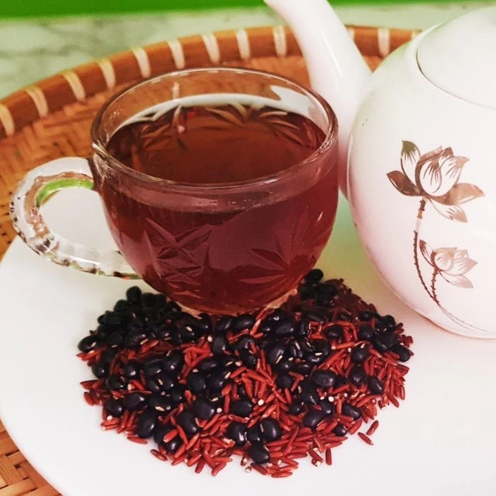 このお茶は、香ばしい「赤米(血龍米)」と、栄養価の高い「緑芯黒豆」を厳選し、熟練の職人が手作業で丁寧に焙煎しています。焦がすことなく、米や豆が持つ貴重な皮の栄養と、緑芯黒豆の鮮やかな緑色をそのまま残しました。