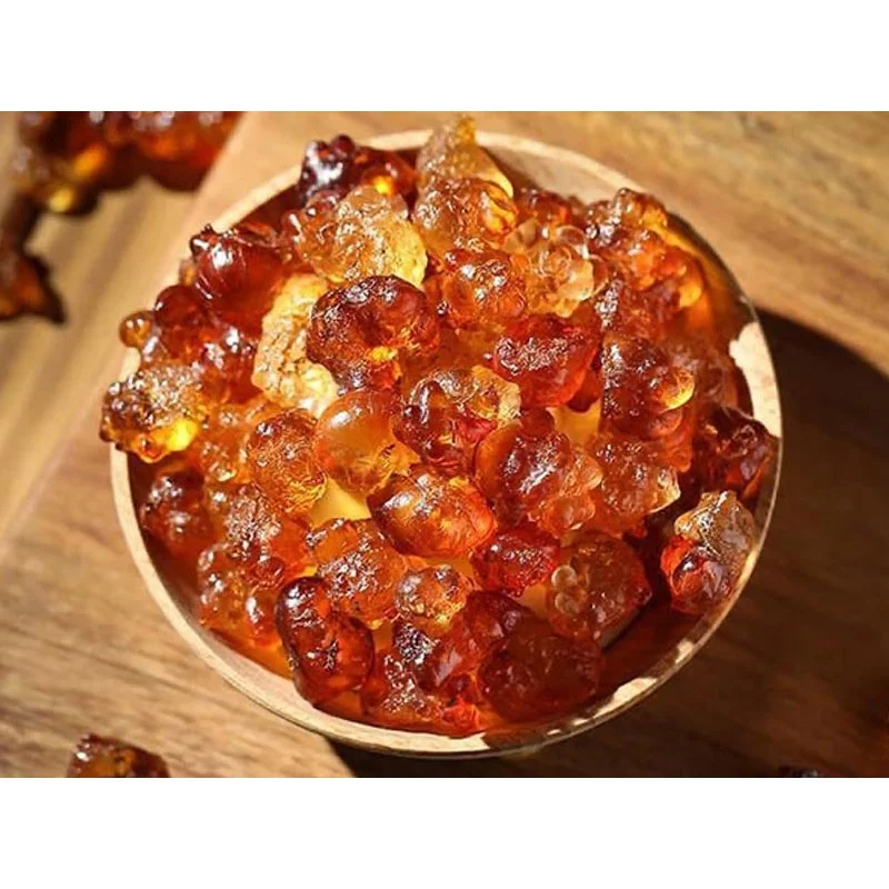 琥珀の涙が森から届く、ベトナム高山の恵み。桃の樹液は、高山の桃の木から自然に分泌され、固まると琥珀色の美しい宝石のような姿になります。NTFoodの桃の樹液は、化学薬品に触れることなく自然に育った桃の木から、丁寧に手作業で収穫されています。