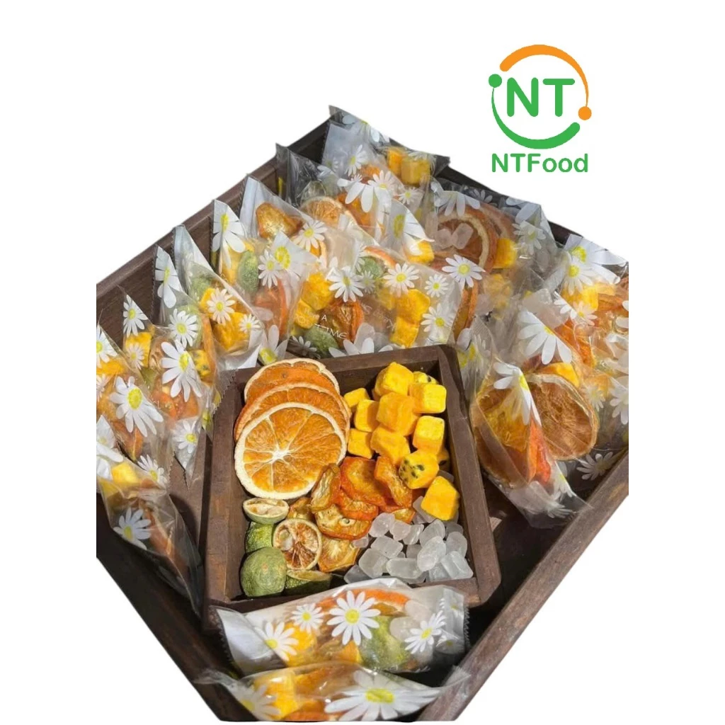 この製品は、NTフードのフルーツティーラインの誇りであり、忙しい現代のライフスタイルに合わせて特別にデザインされています。便利な250gの大きな袋には、25gの小袋が10個入っており、職場、学校、旅行先など、どこへでも簡単に持ち運べます。各小袋には、黄金色の金柑スライスと濃厚なパッションフルーツエキスが凝縮されており、見た目にも美しく、健康にも非常に良い飲み物です。