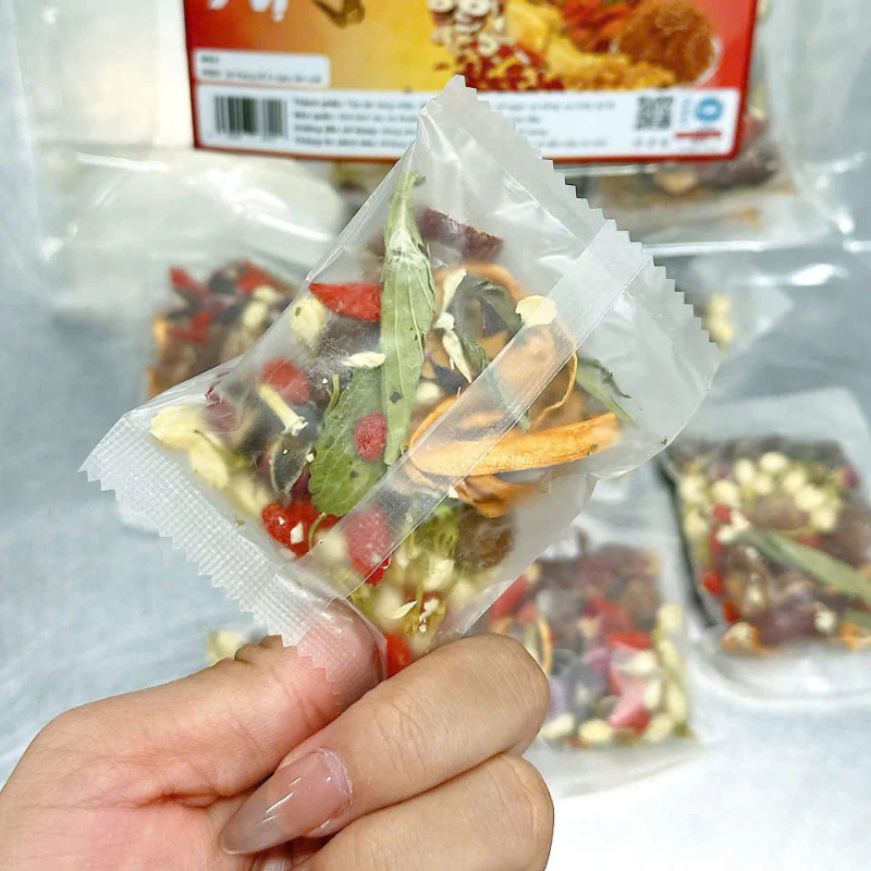 NTFood薬膳美容ハーブティーは、単なる飲み物ではありません。色と香りのシンフォニーです。ニャットティンフードが古くからの補血・美肌の処方に基づき、黄金比でブレンドした15gのティーバッグ一つ一つに、そのこだわりが息づいています。棗の赤、菊の黄、バラの蕾の紫の組み合わせは、美味しいだけでなく、目にも美しい一杯を作り出します。先進的な乾燥技術により、原材料の形と薬効成分がそのまま保たれ、オフィスやご自宅の小さなキッチンで、本格的なティータイムをお楽しみいただけます。2. 成分:"スーパーフード"の集結