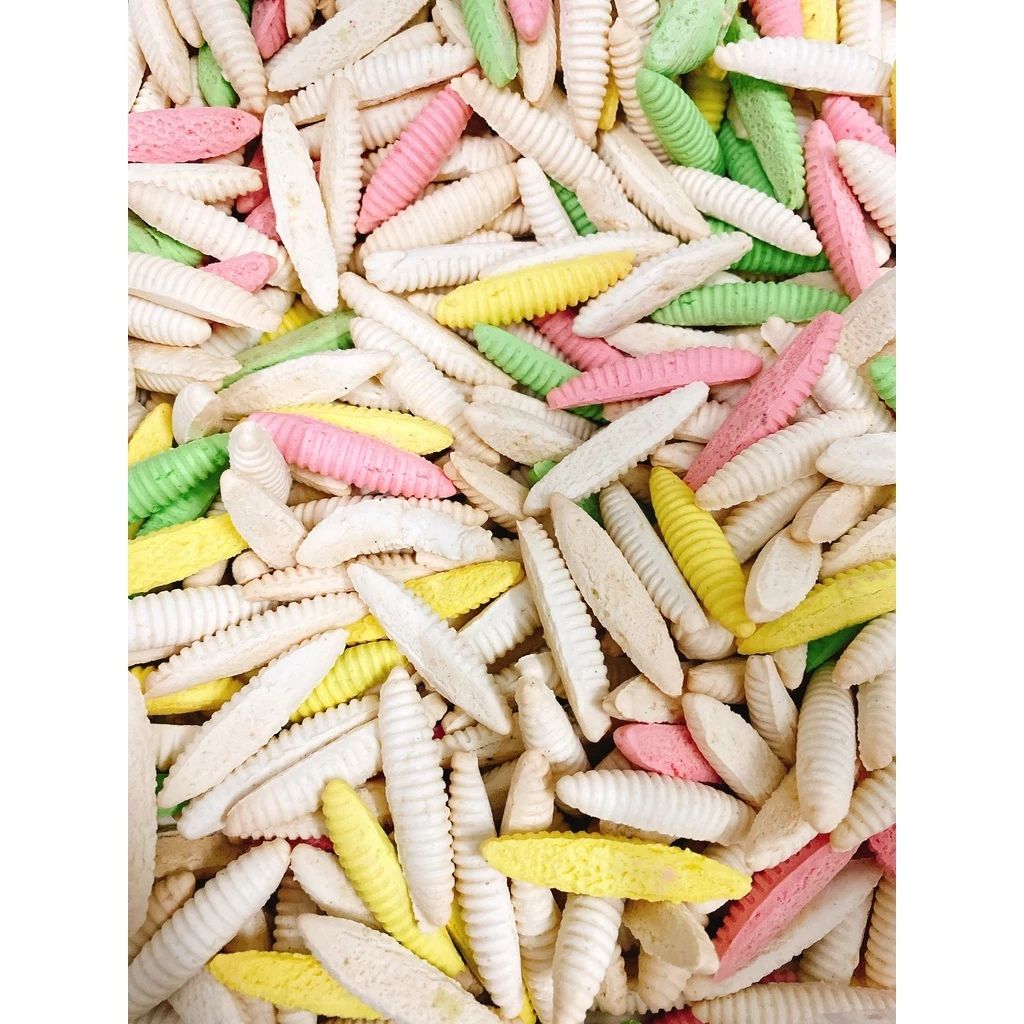 ベトナム南部の伝統的なお菓子「Bánh Đuông(バン・ドゥオン)」は、その独特の細長い形状と特徴的な切り込みが、まるでふっくらとしたココナッツゾウムシの幼虫(ドゥオン・ズア)のようです。NTFoodの「Bánh Đuông バターミルクミックスフレーバー」は、プレーンのミルク、爽やかなパンダンリーフ、芳醇なココアの3種類の味が楽しめます。高級プラスチック容器入りで、サクサクとした食感を保ち、友人や家族への贈り物にも最適です。