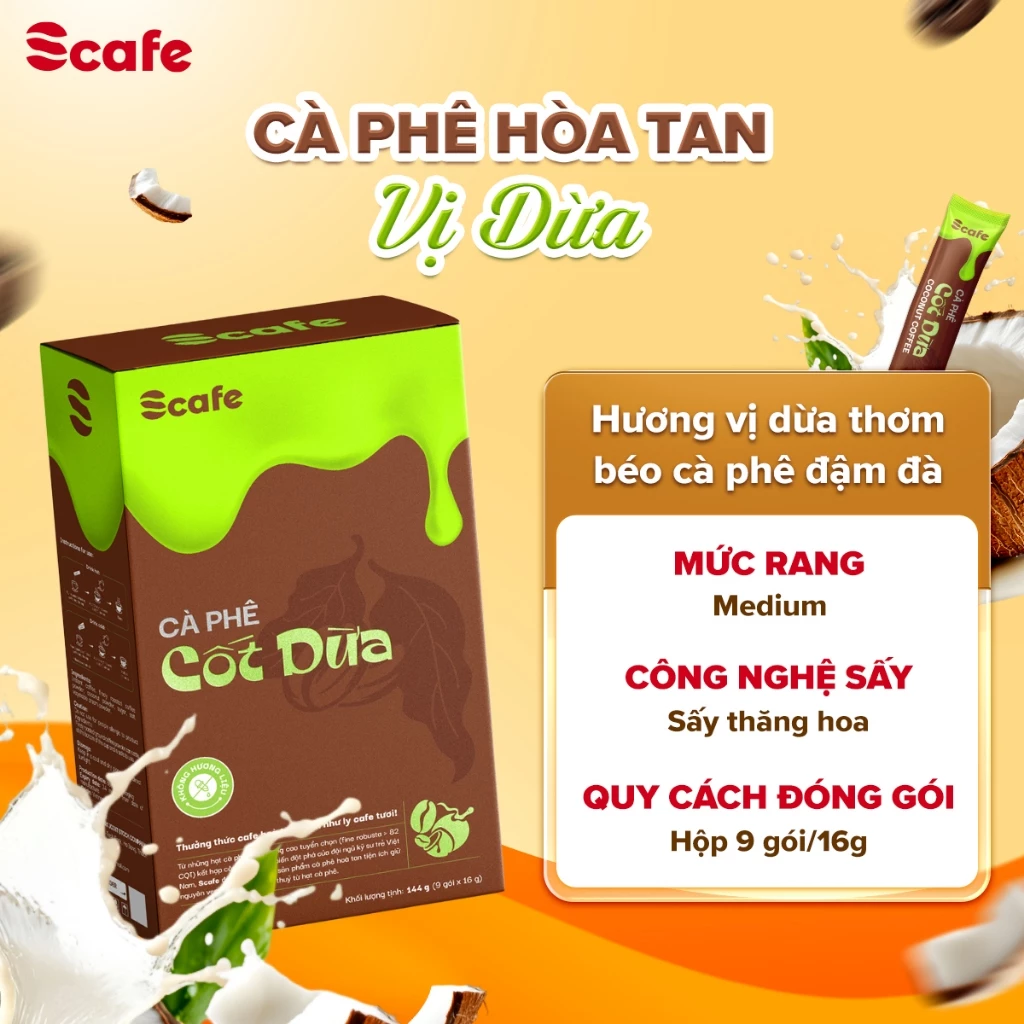 SCAFEインスタントココナッツコーヒーは、ベトナムの太陽と自然が育んだトロピカルな風味をいつでもどこでも手軽に楽しめる新世代のインスタントコーヒーです。甘くクリーミーなココナッツの豊かな香りと、深いコクのあるコーヒーの絶妙なハーモニーは、一口飲むたびに南国の楽園へと誘います。