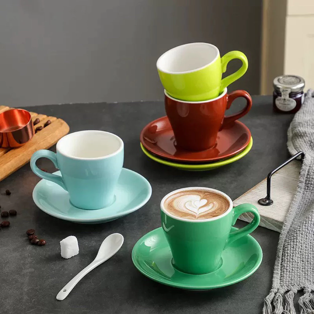 - 厚手の磁器ボディ:一般的なカップよりも厚く作られたカップの壁は、手にしっかりと馴染むだけでなく、最も重要な保温性に優れています。温かいカップは、カプチーノの泡の構造を保ち、素早く溶けるのを防ぎます。