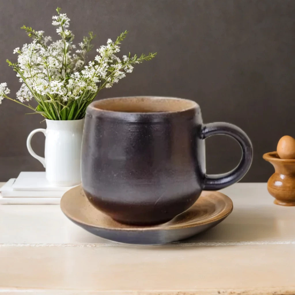 カップは、1200°C以上の高温で焼成された厚みのある陶器で作られており、不純物や鉛を完全に除去し、健康への絶対的な安全性を保証します。使用されている釉薬は、火変釉薬または高級光沢釉薬で、光が当たると奥行きのある効果を生み出し、まるでテーブルに飾られた芸術作品のようです。