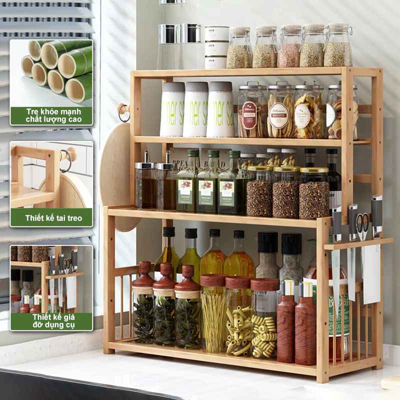 Woodland Kitchen Spice Rack Multi-functional Seasoning Storage Shelf 50cm*23cm*66cm