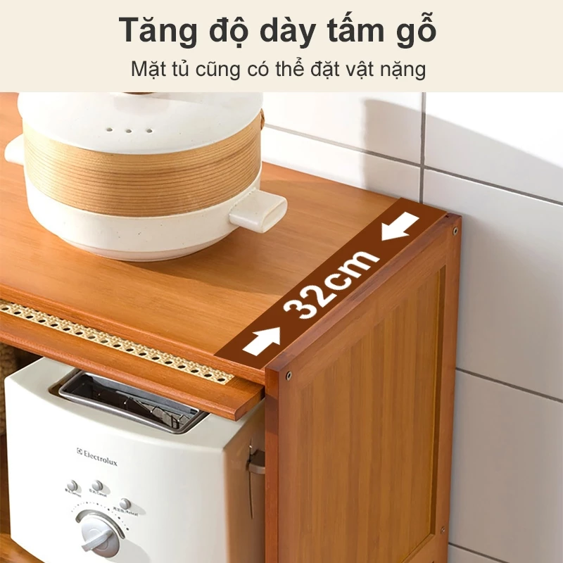 Woodland Natural Bamboo 2-Tier Kitchen Cabinet 43x32x68cm - Multi-functional with Open Shelves, Simple Japanese Style