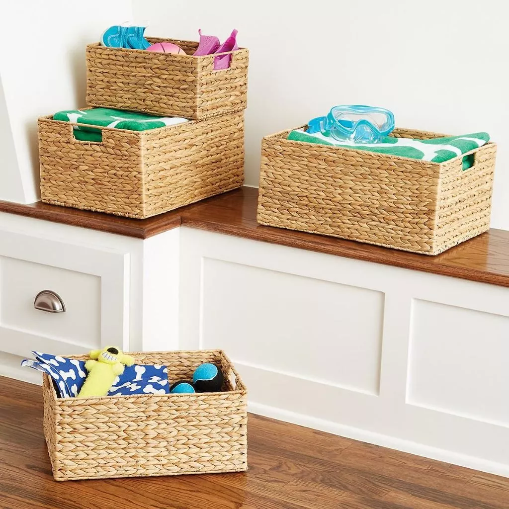 ウォーターヒヤシンス製多機能バスケット Mサイズ (40x25x18cm) – 布製インナー付き、防カビ、ヴィンテージスタイルの通販・個人輸入代行販売商品