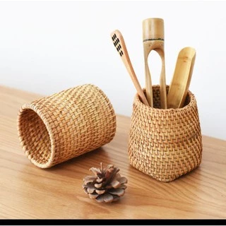 Handwoven Rattan Multi-purpose Basket - Vintage Style Pen, Cosmetic & Small Item Organizer - Export Quality