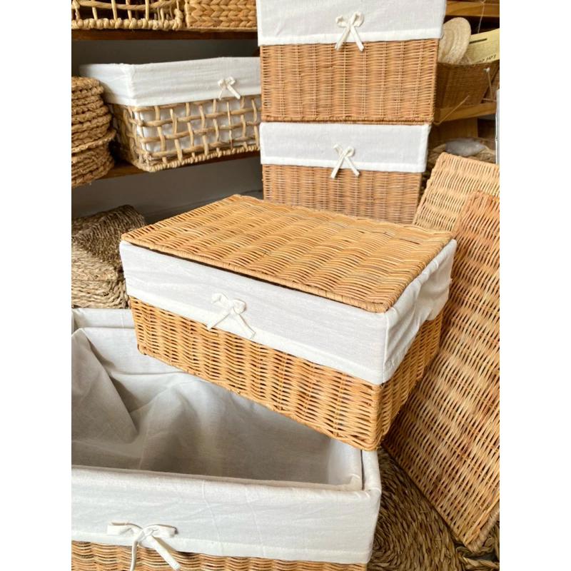 多目的ラタン収納バスケット Mサイズ ふた付き - ランドリー&食品トレイの通販・個人輸入代行販売商品
