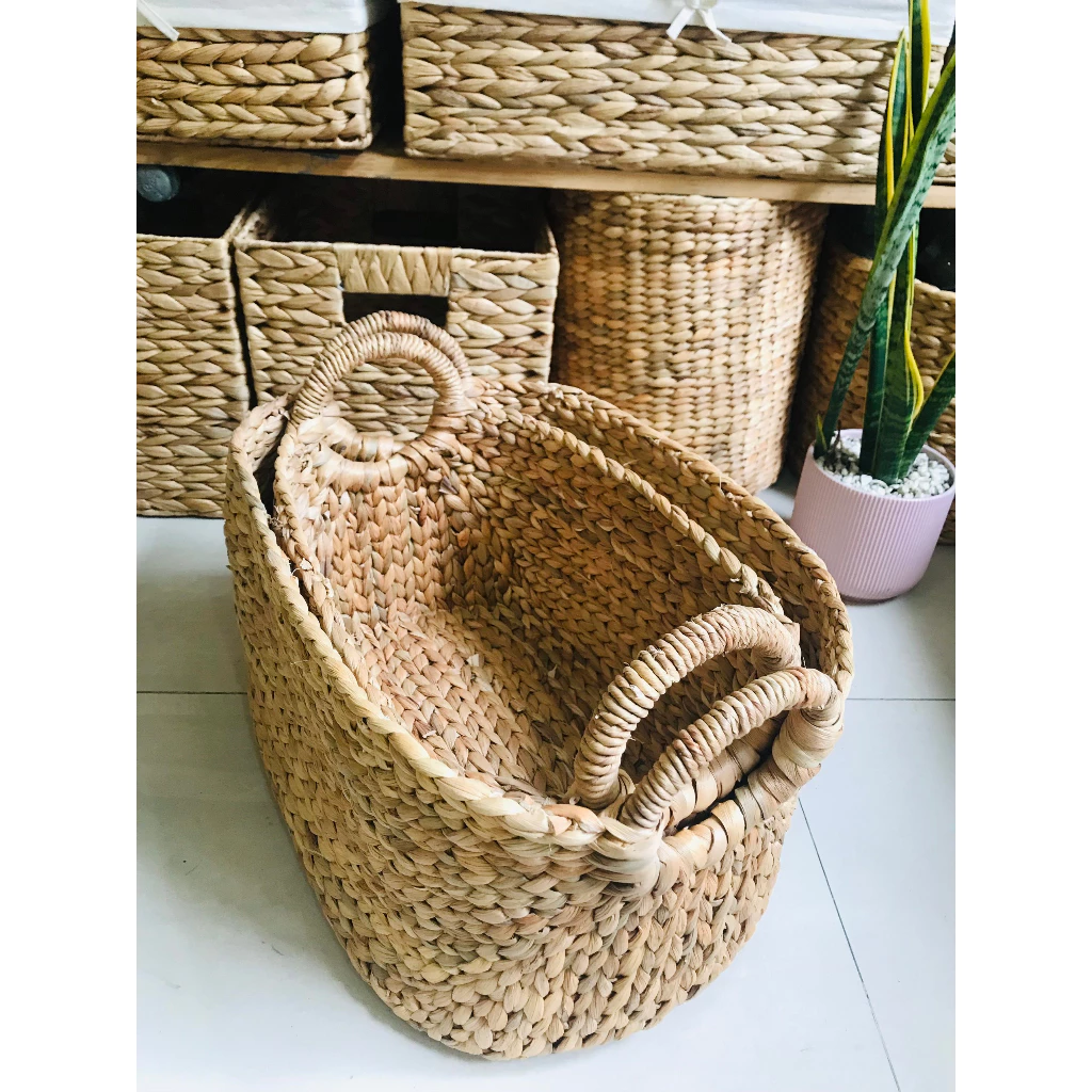 Oval Water Hyacinth Storage Basket with Handles (No Metal Frame) Size M (36x24x22cm) for Multi-purpose Storage