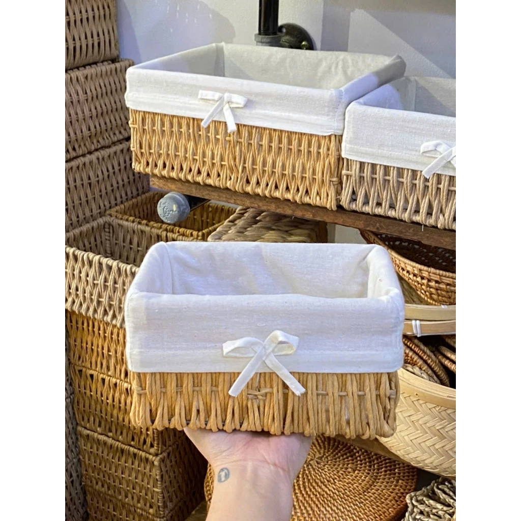 ヴィンテージ風 紙ひも編み収納ボックス (Mサイズ 22x16x12cm) - アクセサリー・コスメ・靴下整理用の通販・個人輸入代行販売商品