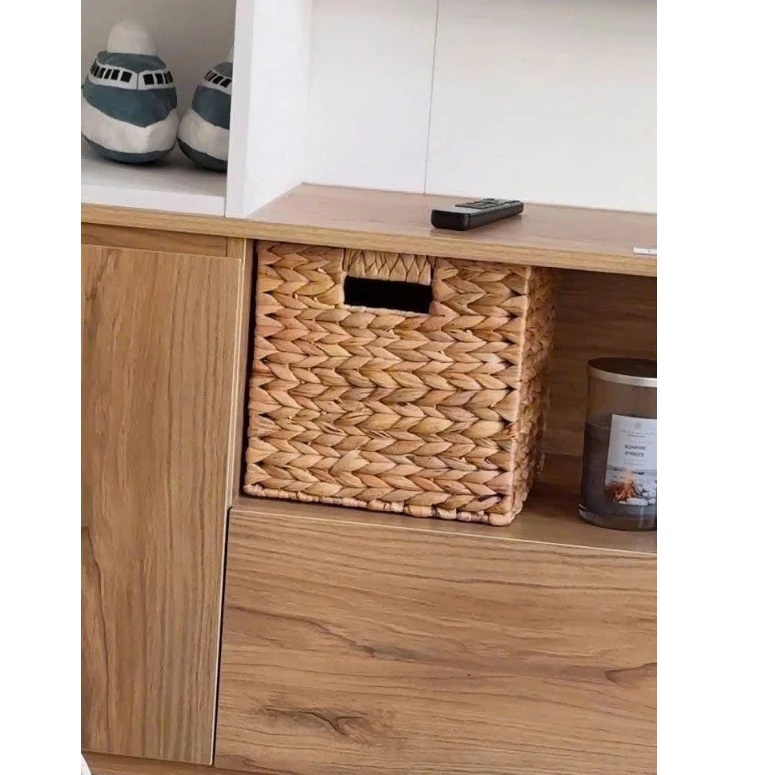 Water Hyacinth Square Storage Basket 27x27x27cm - Hand-Woven Floral Pattern for Clothes, Drawer Organization & Home Decor