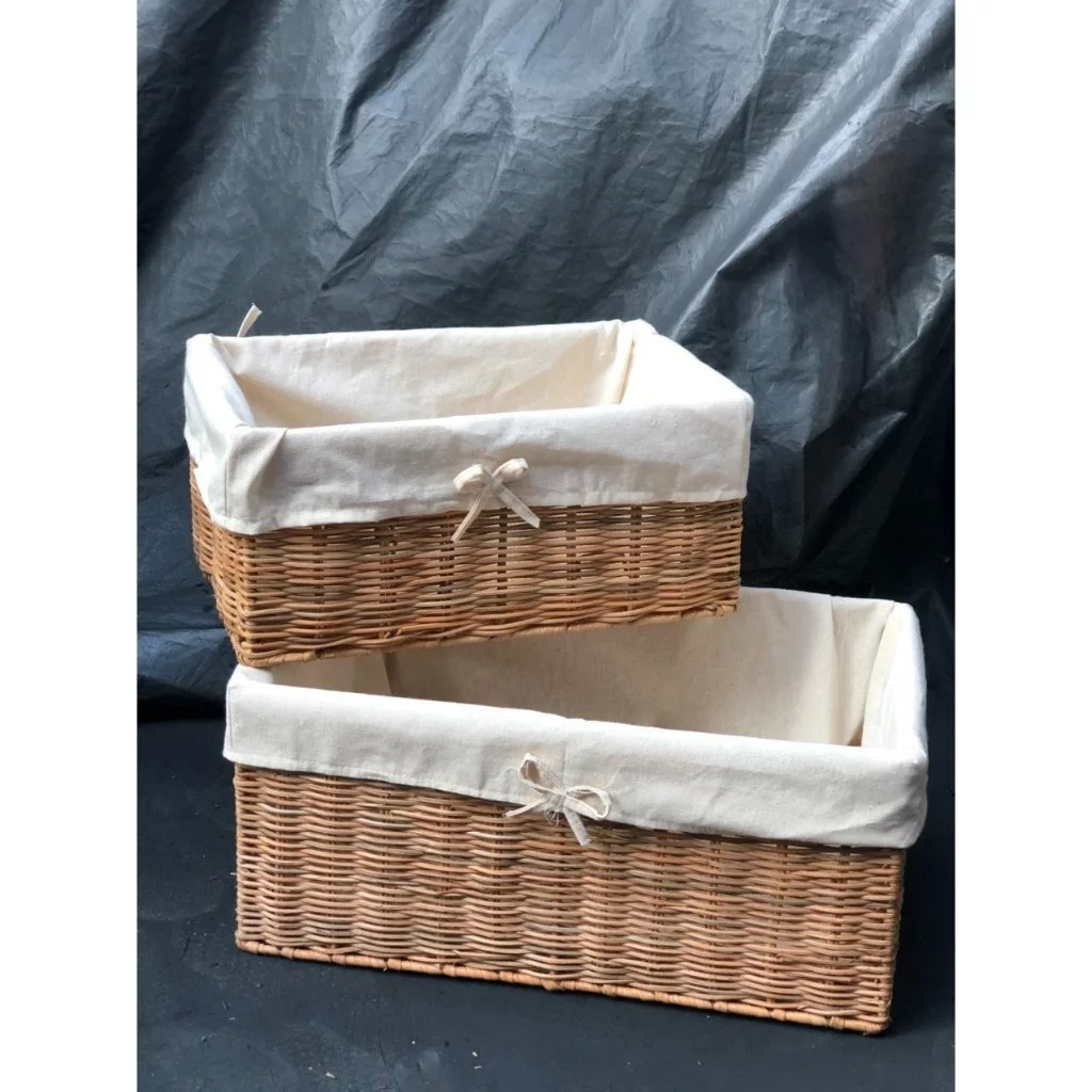 Natural Rattan Multi-purpose Storage Basket (L Size) with Fabric & Optional Lid - Laundry Hamper & Home Decor